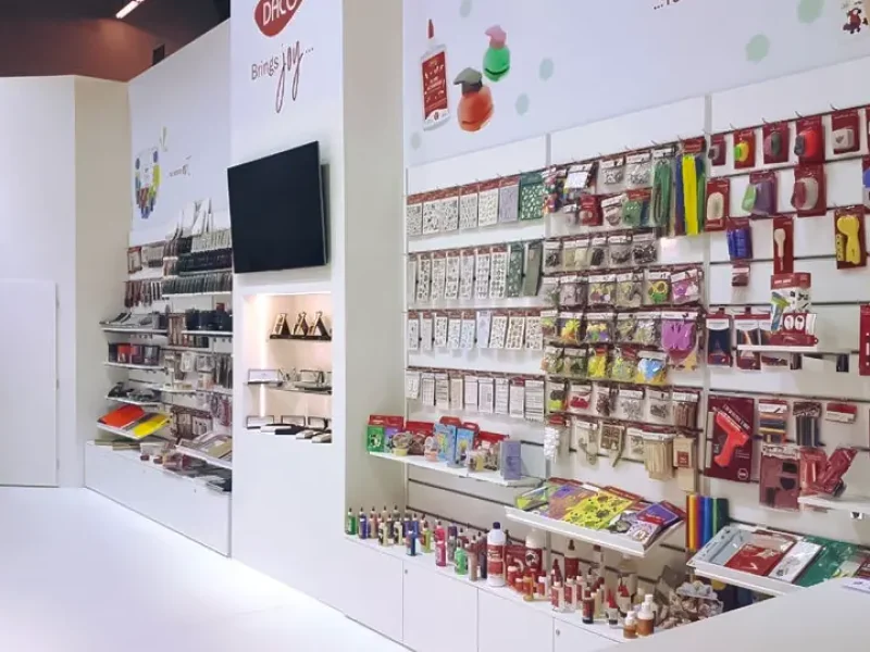 - Product-Focused Zones: We created dedicated zones within the stand to effectively display DACO’s extensive product range, from writing instruments to crafting supplies. This allowed visitors to easily navigate and explore the different offerings.