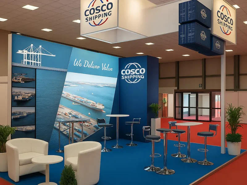 - Product Representation: Symbolic representations of shipping containers were integrated into the stand design, subtly reinforcing COSCO SHIPPING Lines’ core business activities.