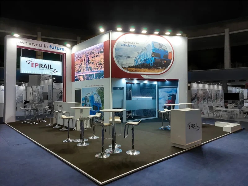 We are pleased to present the design and construction of the exhibition stand we created for E-P Rail at the recent TransLogistica event in Romania. Our goal was to develop a modern and engaging space that effectively showcased EP Rail’s commitment to the railway industry and facilitated interactions with attendees.