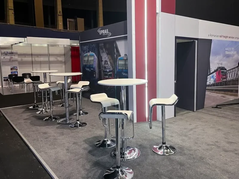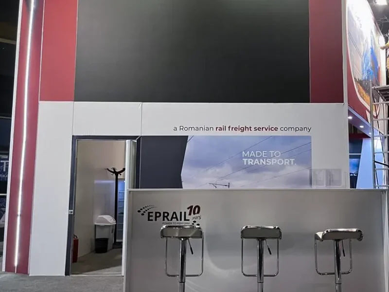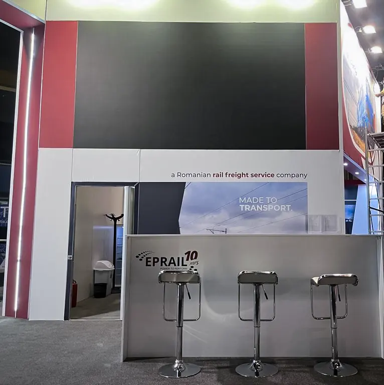 We are pleased to showcase the design and construction of the exhibition stand for E-P Rail at TransLogistica 2023 in Bucharest. Our primary objective was to create a modern and professional space that effectively communicated EP Rail’s commitment to the future of railway infrastructure and logistics, fostering engagement with industry professionals.